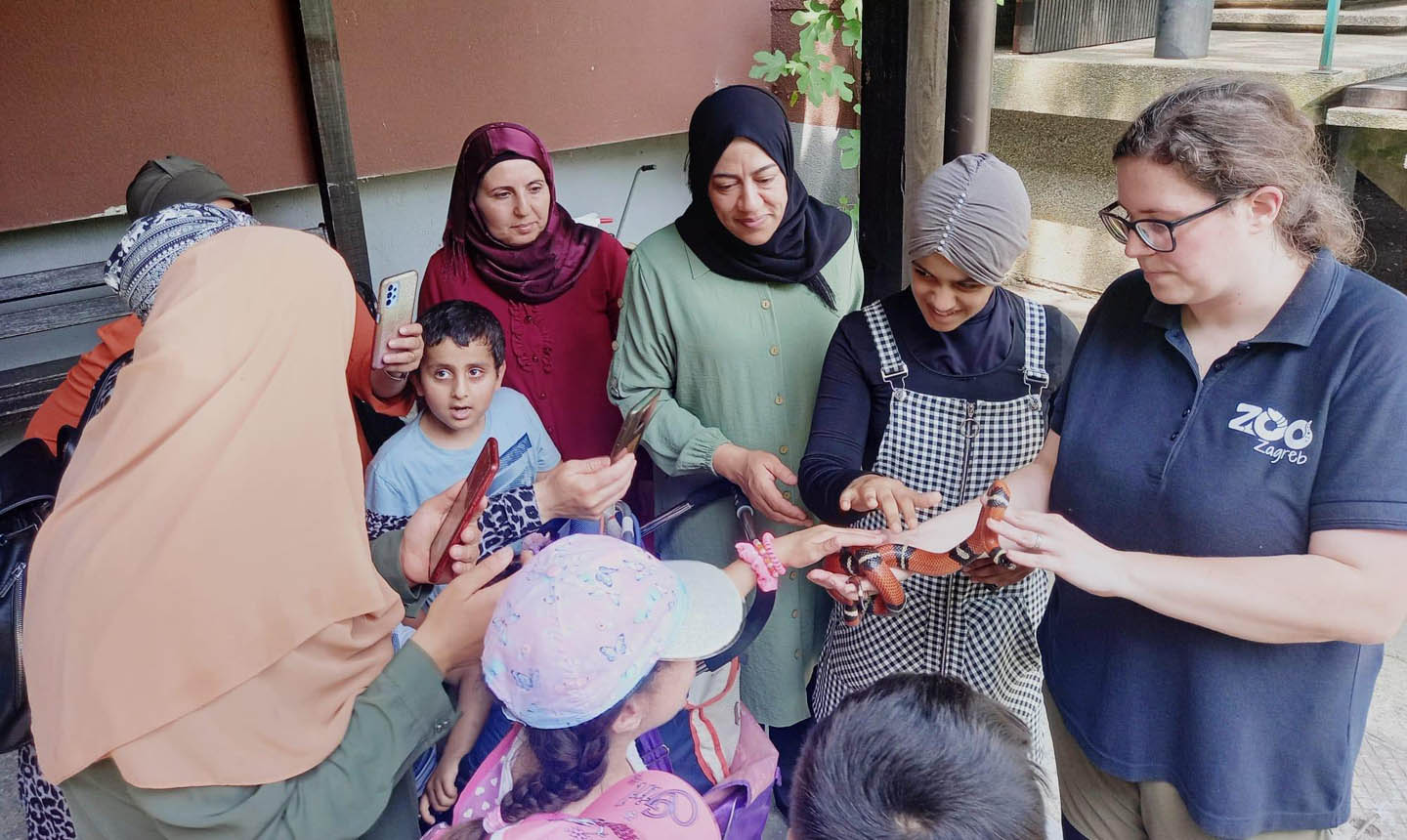 Dvadesetak žena i djece, uz organizacijsko-prevoditeljsku podršku Salama Al-Nidawi, mag. iur. i volonterski angažman Ivančice Devčić, mag. croat. na prvi dan proljeća posjetilo je Zagreb – ZOO vrt i humanitarnu udrugu ‘Are jou syrious?’. Kako saznajemo, dan su aktivno i veselo proveli – mini bus je sudionike ukrcavao za putovanje na mjestima što bliže njihovom životnom okruženju, u ZOO vrtu razgledavali su životinje uz vodstvo stručne edukatorice Ane, koja se iznimno trudila da sudionicima prenese što više zanimljivih priča i znanja o životu životinja. Najuzbudljiviji dio susreta bio je susret sa zmijom, kada su svi zainteresirani i hrabri mogli ostvariti izravan kontakt s ovom životinjom, koju neopravdano prate mnogi strahovi temeljeni na predrasudama. Potom je uslijedio zajednički ručak kod Morskog lava, čiji su kuhari prihvatili sve prehrambene osobitosti i potrebe sudionika ovog izleta.