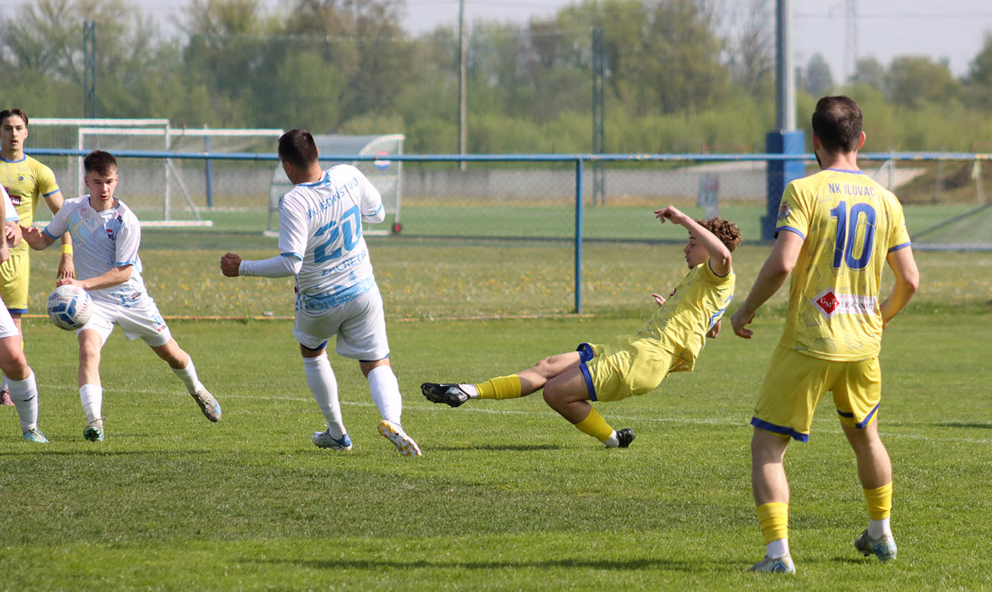 Ilovac je odlično ušao u utakmicu, pritisnuo goste, Popovački, Bukovac i Kladušan nisu iskoristili dobre prigode, no u 21. minuti, nakon ubačaja iz kuta, Vratarić se dobro snašao na drugoj vratnici i snažnim udarcem ‘zakucao’ loptu pod gredu za 1:0. Tri minute kasnije sudac Jokić mogao je pokazati na bijelu točku za goste nakon jednog duela u kaznenom prostoru, no progledao je domaćima kroz prste, a u 28. minuti, nakon duplog pasa Popovačkog i Rojnića, ovaj potonji je iz odlične situacije pogodio vratnicu. Prema odnosu snaga na terenu, činilo se kako je samo pitanje trenutka kada će ‘kanarinci’ doći do drugog pogotka. Međutim, uslijedio je preokret. Dlesk je u 35. minuti opalio iskosa, lopta je nekog očešala pred vratima domaćih, promijenila smjer, prevarila Bogovića i odsjela u mreži za 1:1. Ilovac je potom prokockao još jednu odličnu prigodu, a u 38. minuti, nakon oštrog ubačaja s desne strane, Vincelj je pogodio za 1:2. Do kraja prvog dijela ubilježili smo još jednu veliku šansu Popovačkog, ali i prigodu gostiju, koju je Bogović zaustavio.