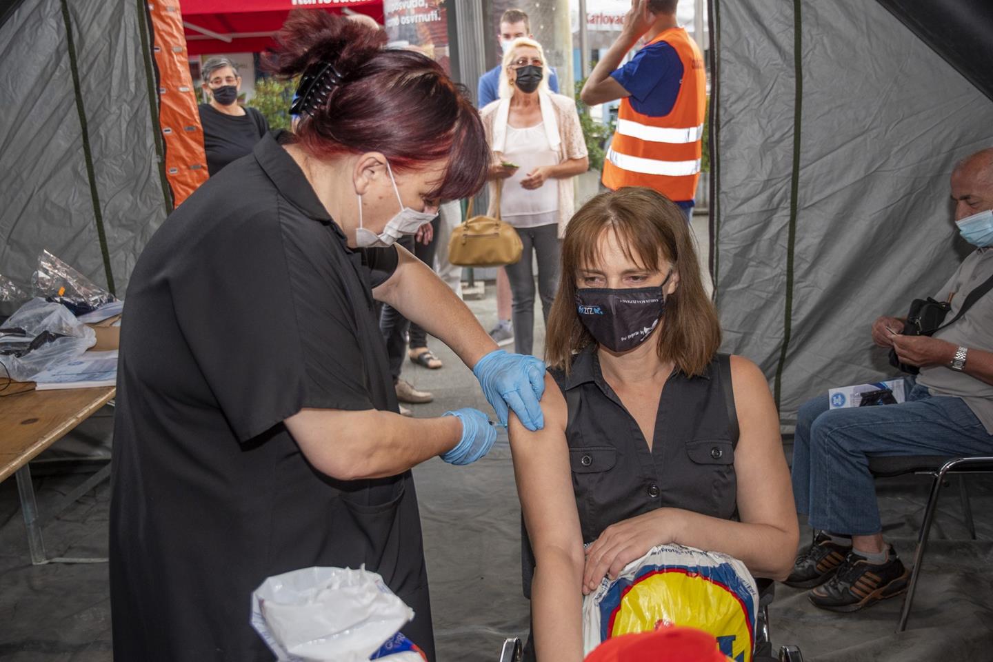 Mobilni tim Zavoda za javno zdravstvo Karlovačke županije danas je pod šatorom na trgu ispred Kauflanda u dva sata procijepio 78 građana, od čega je većina primila prvu dozu.