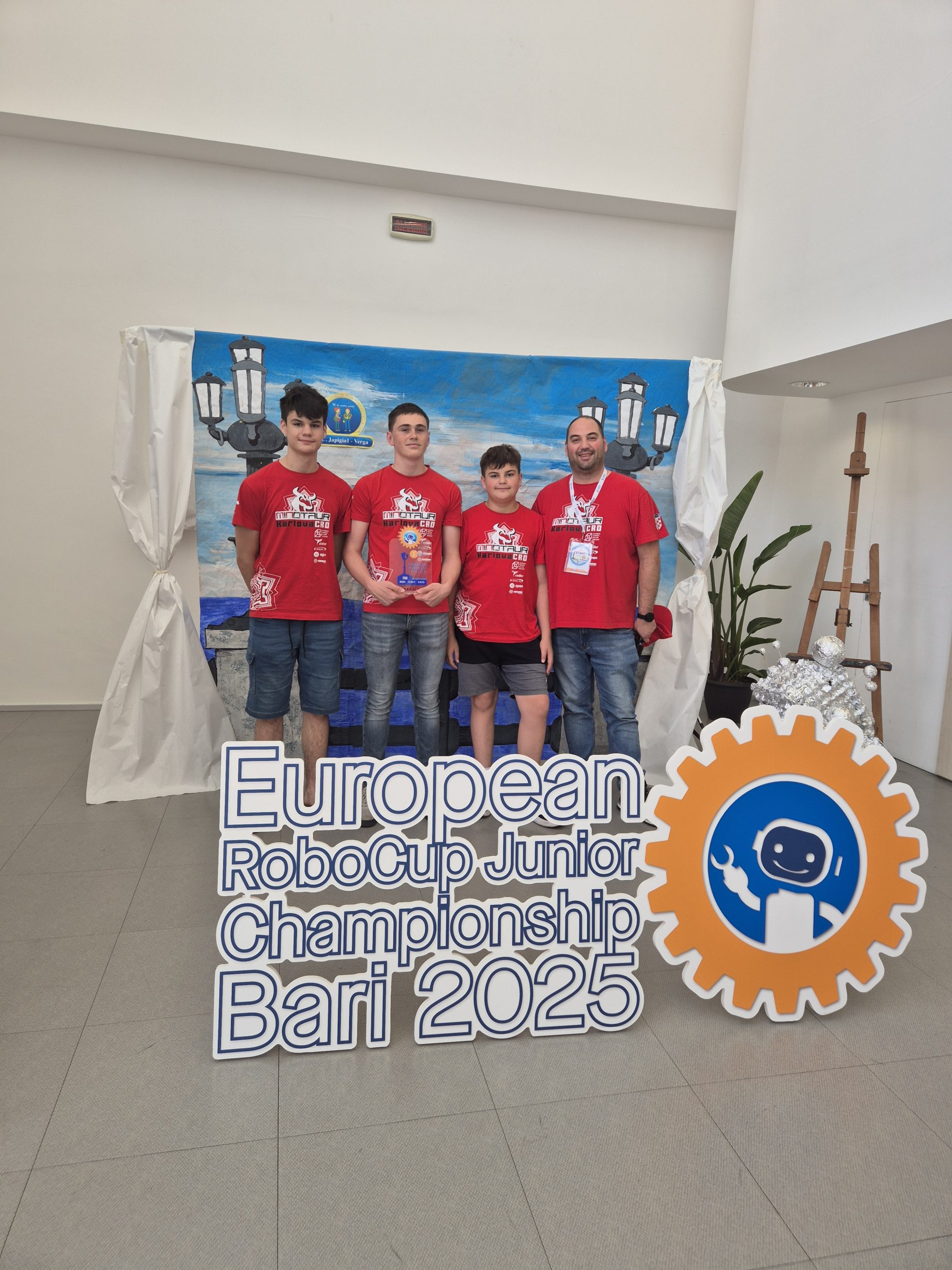 Maksim, Nikola i Oskar su europski prvaci, pobjednici kategorije Maze European championship Robocup Junior prvenstva 2025. godine, vlasnici pehara i zlatnih medalja.