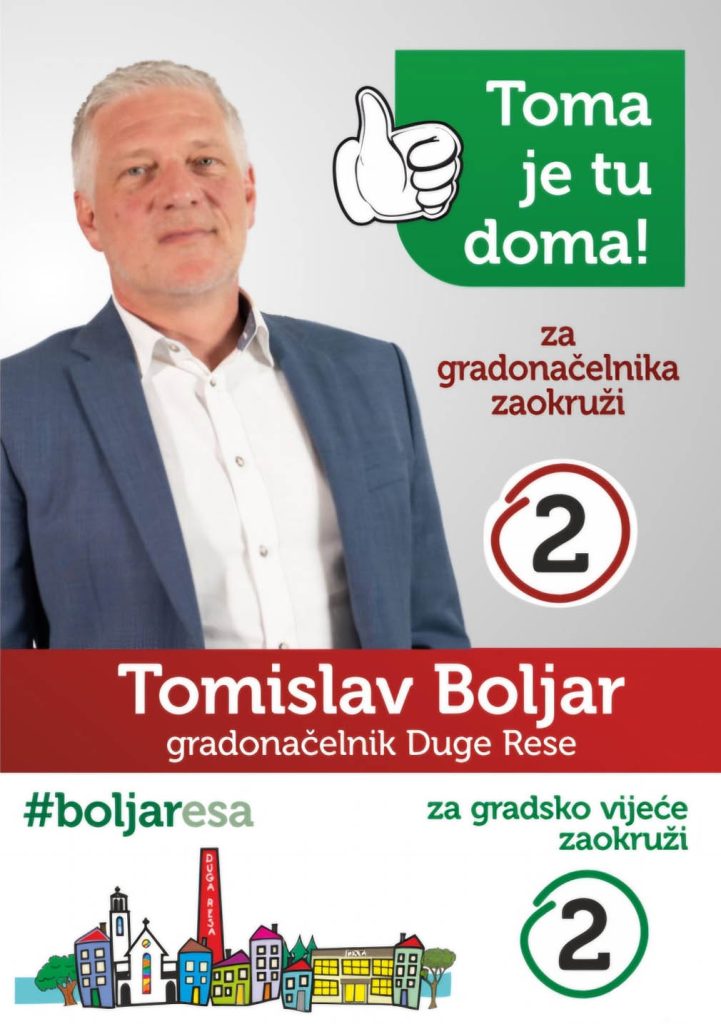 Na izborima u nedjelju, 18. svibnja, za gradonačelnika Duge Rese zaokružite broj 2 – Tomislava Boljara, i njegovu listu za Gradsko vijeće Duge Rese – također broj 2!