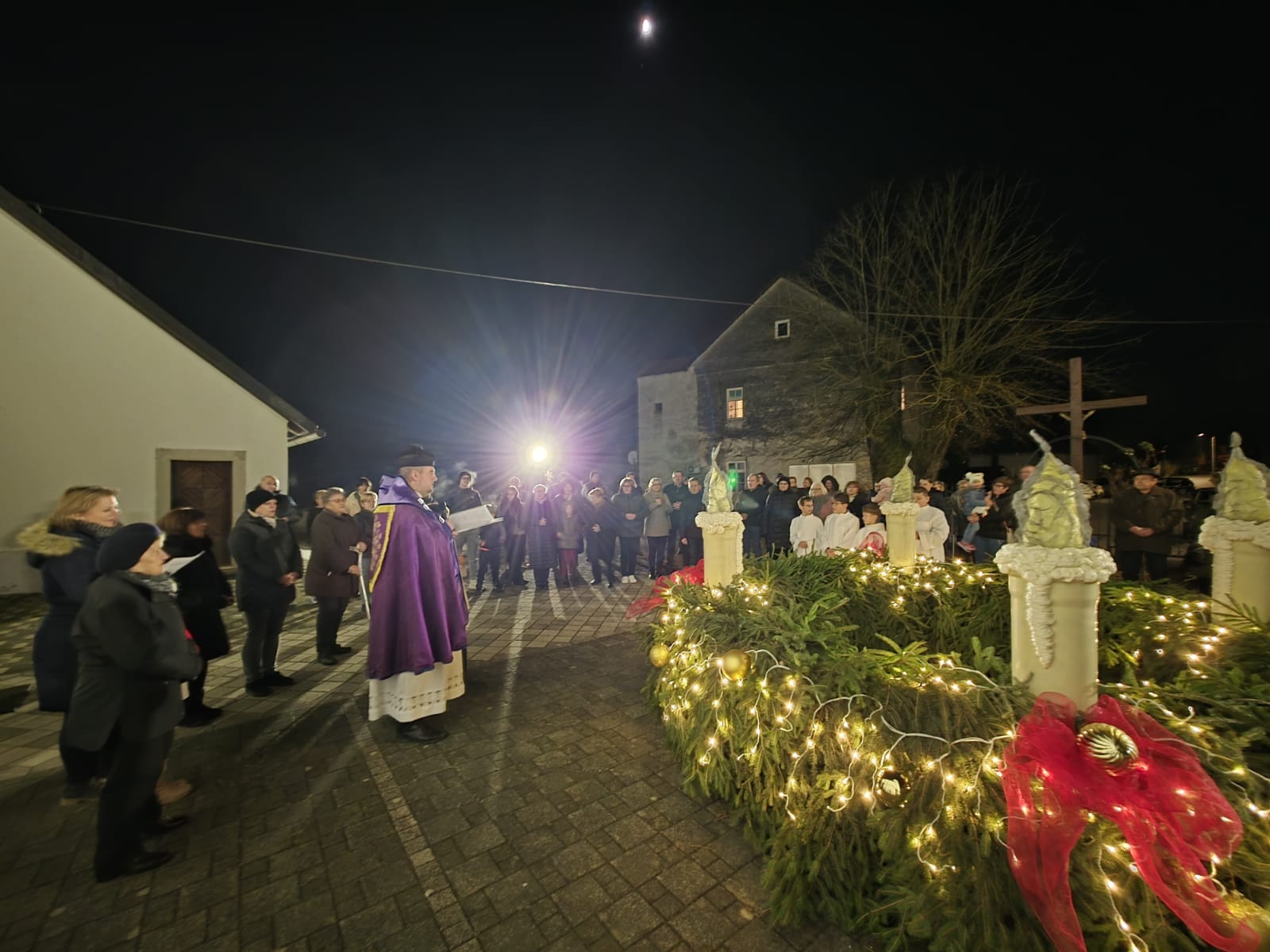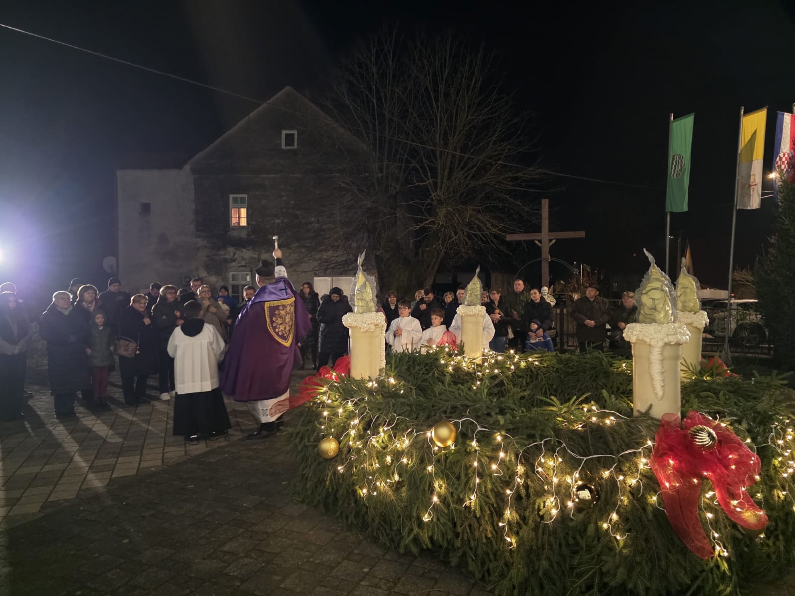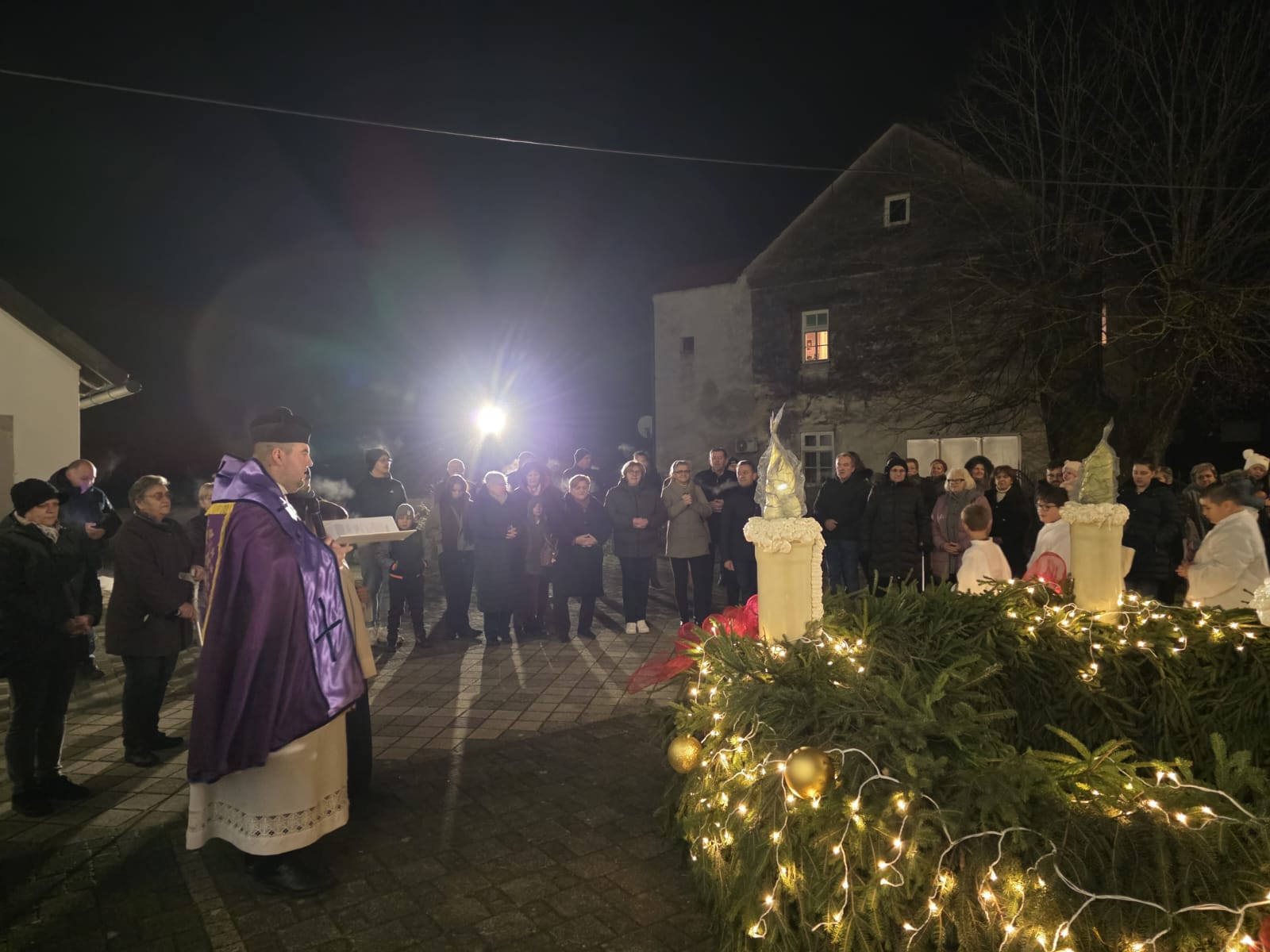 Sami župljani izradili su ovaj adventski vijenac koji je večeras i blagoslovljen, a onda se uz pjesmu i molitvu ušlo i u otajstvo ovogodišnjeg došašća, predvođeni župnikom vlč. Markom Nimcem.